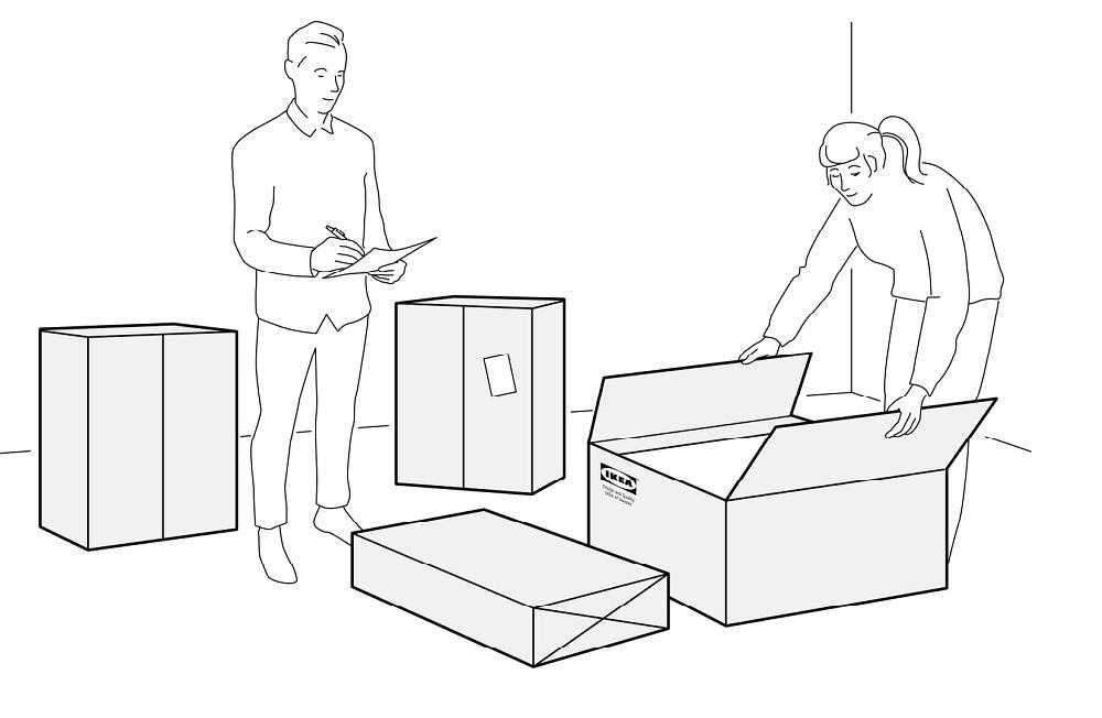 - Снять упаковку с мебели, срезав аккуратно упаковочный скотч и картонную коробку. Использовать нож не стоит, чтобы не повредить мебель внутри упаковки.
