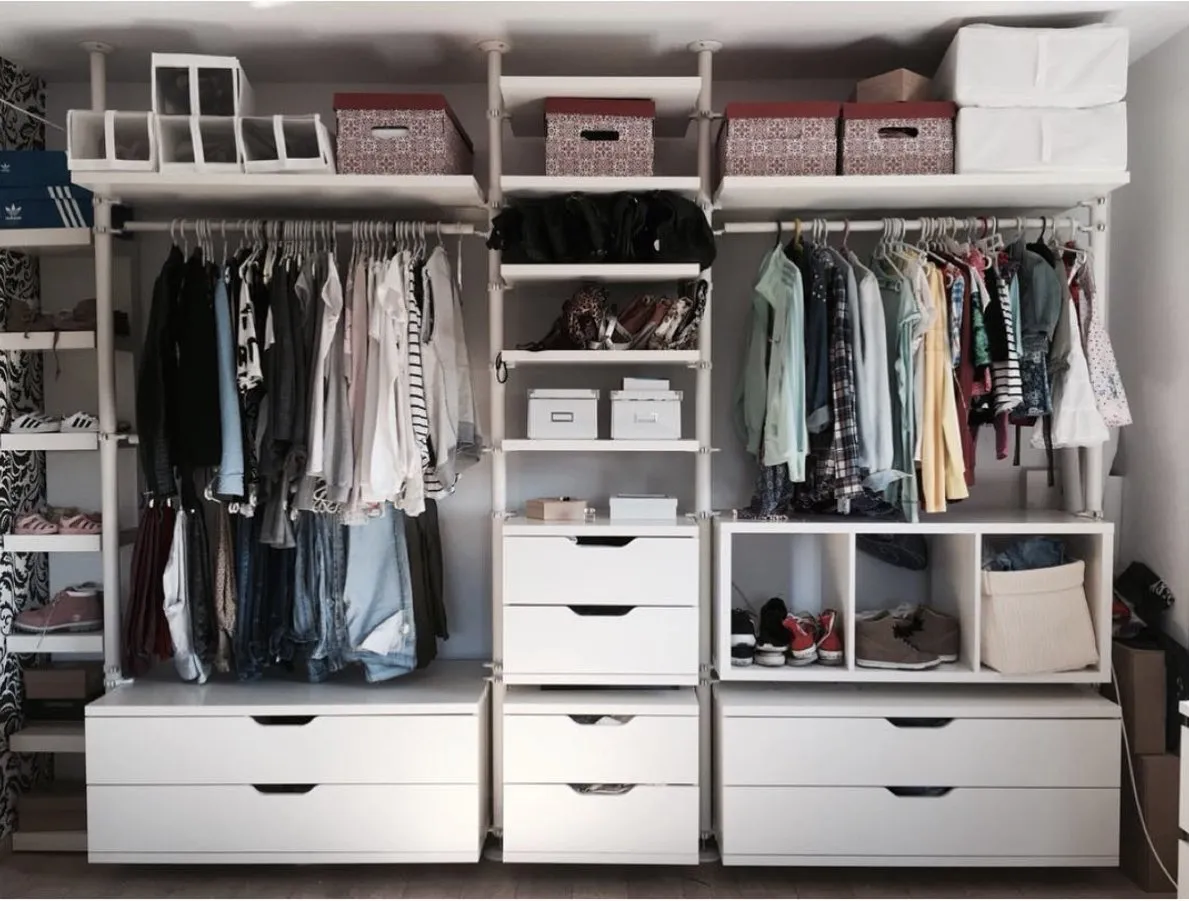 Организуйте пространство: Разместите одежду, обувь и аксессуары на полках и вешалках. Используйте коробки, ящики или органайзеры, чтобы разделить пространство и сделать его более удобным.