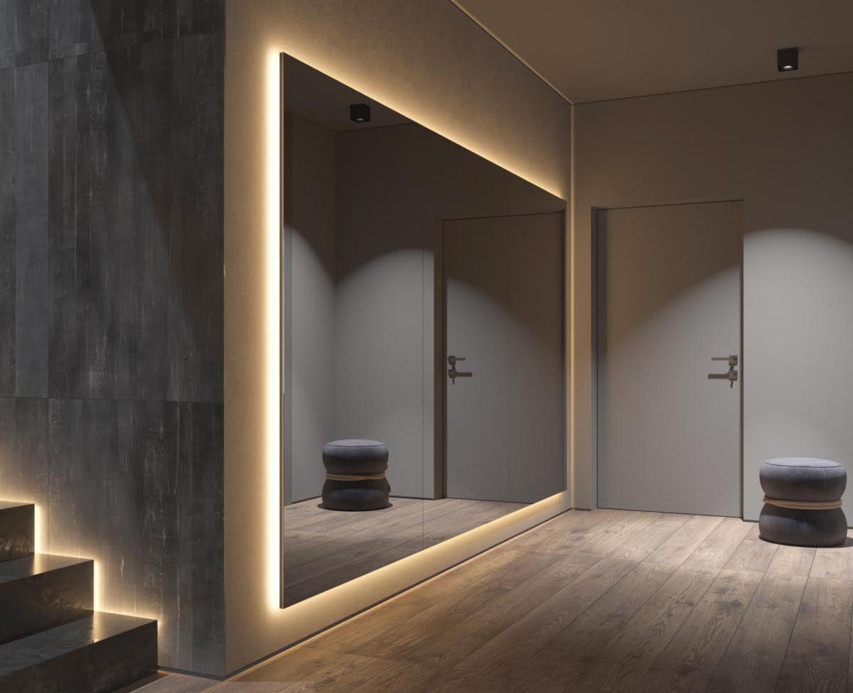 Так, в мало освещенной прихожей, в которой очень мало места, можно только разместить источник света перед зеркалом, и за счет его распространения через зеркало, выйдет коридор, похожий по габаритам на полноценную кубическую комнату с хорошим освещением.