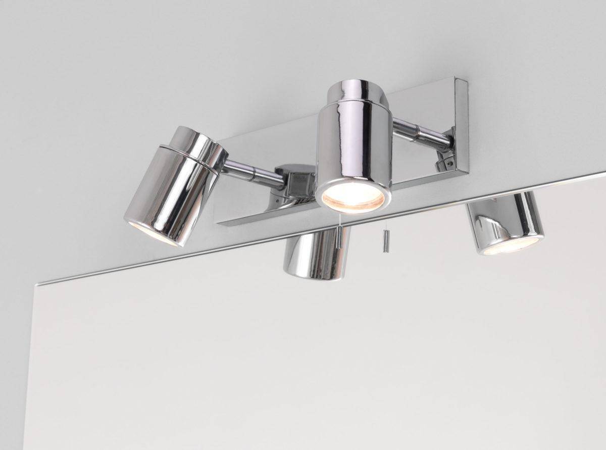 Одна или несколько ламп на потолке, стене, чуть выступающие за зеркальное полотно, обеспечат хорошее освещение в этой зоне. Однако свет, падающий сверху, образует на лице глубокие тени. Желательно этот вариант комбинировать с другими осветительными приборами.