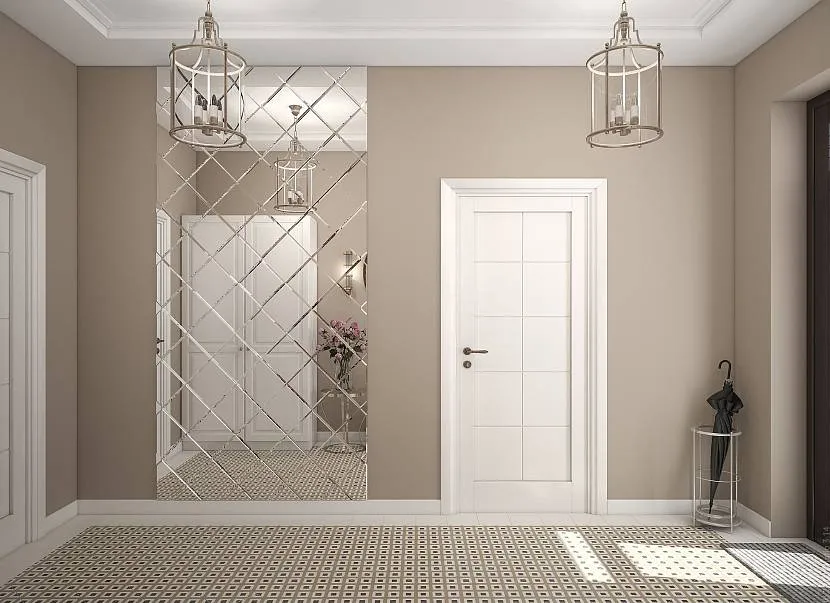 Зеркало с ромбами до потолка возле входной двериИсточник fi.pinterest.com