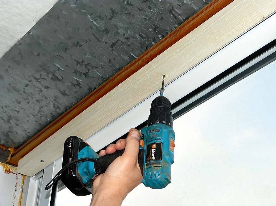 Обычно багетный профиль крепят к перекрытию или стенам. В лоджии этому мешают светопрозрачные конструкции до потолка, поэтому, как правило, требуется сначала собрать обвязку из брусков сечением как минимум 40×40 мм. Данное решение к тому же позволяет немного опустить потолок, чтобы устранить объёмную диспропорцию помещения и установить точечные светильники. Перед монтажом багета перекрытие требуется очистить от отслаивающейся краски и штукатурки и обработать укрепляющей грунтовкой.