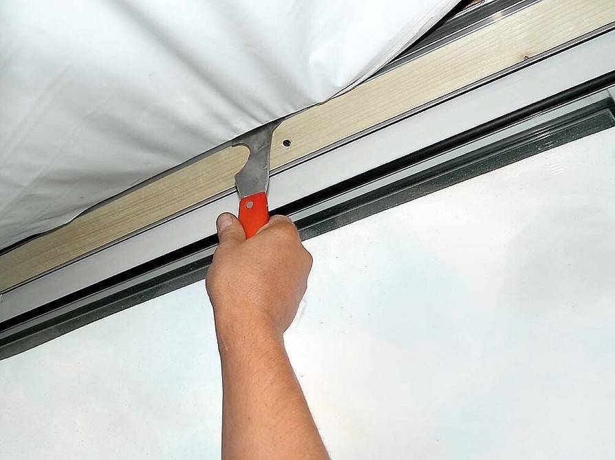 Кроме того, необходимо тщательно обследовать примыкания стен к верхнему перекрытию и оконный монтажный шов на предмет отсутствия щелей и зазоров. Если в пространство над натянутой плёнкой (полотном) будет проникать воздух, по потолку пойдут волны.