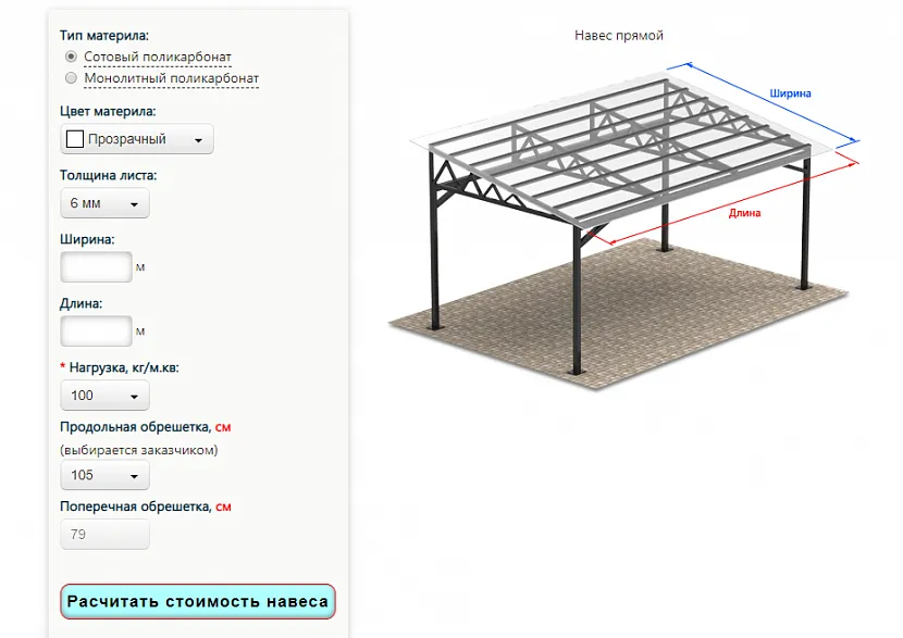 Прежде чем решить, какой толщины выбрать поликарбонат для навеса, нужно сделать проект, на его основании рассчитать материалы. Лучше воспользоваться услугами профессиональных строителей. Можно использовать для этих целей онлайн калькуляторы.