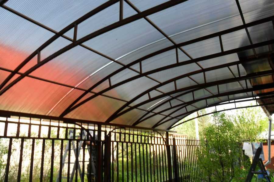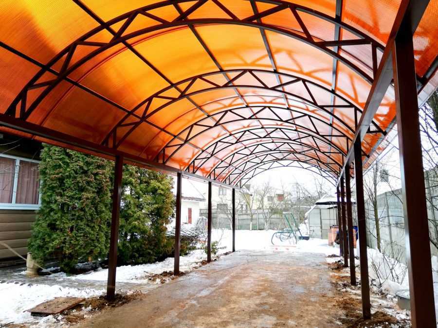 Пример, как делать навес из поликарбоната своими руками, чертежи арочной конструкции