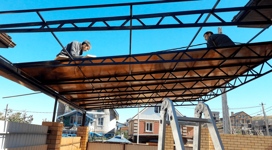 Пошаговая инструкция, как самому построить навес к дому из поликарбоната