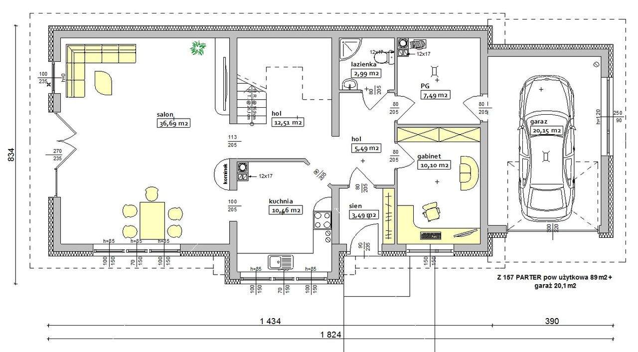 - Место на земельном участке используется максимально эффективно. На первом этаже дома находятся гараж, различные подсобные помещения. За счёт такого совмещения на земельном участке остаётся больше места: например, для посадки деревьев, кустарников, цветов или размещения парника и других необходимых вам конструкций.