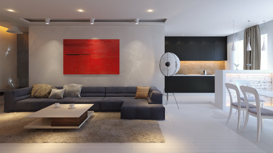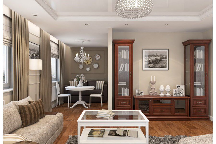 Планирование функциональных зон. Обустраивая гостиную в квартире свободной планировки, выбирайте мебель с учетом зонирования пространства. Шкафы и стеллажи отлично справляются с ролью перегородок.
