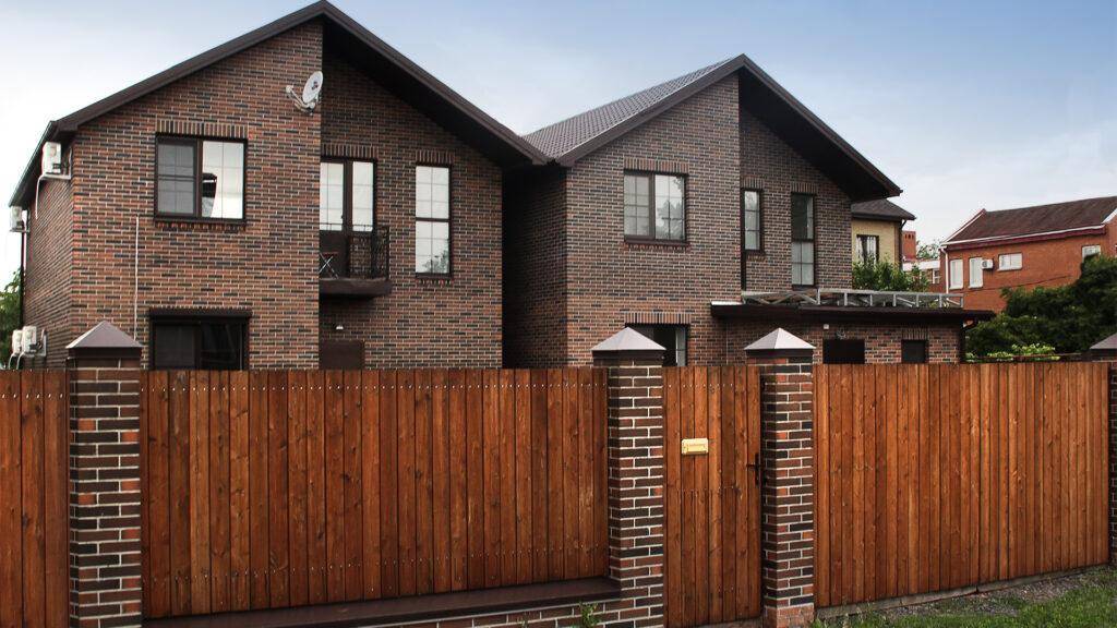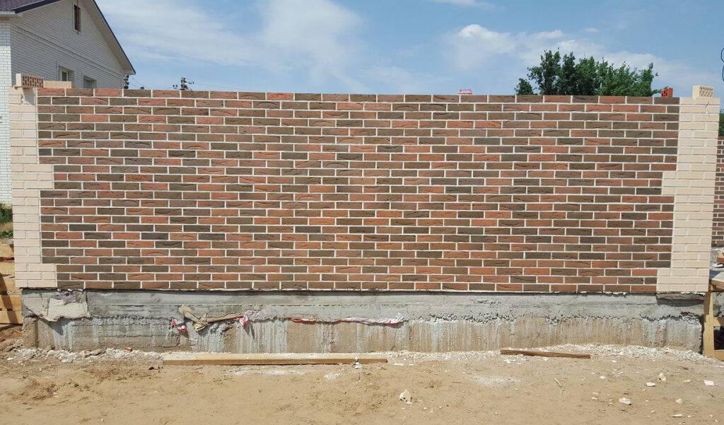 Конструкция секций может быть разной — от сплошного заполнения кирпичом, до сборки деревянных щитов. Если используется кладка, ее встраивают в конструкцию столбов — это позволяет усилить полотно и избежать ослабления участков перехода между вертикальными опорами и пролетами.