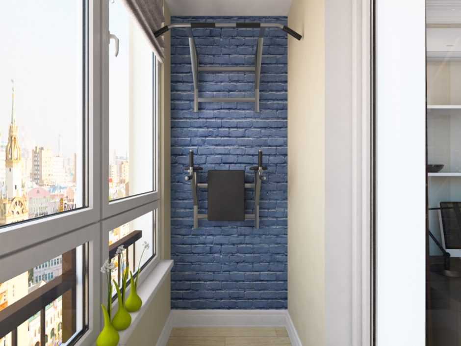 Любители спорта смогут организовать в зоне балкона небольшой тренажерный зал, с соответствующим напольным покрытием и оснащением.