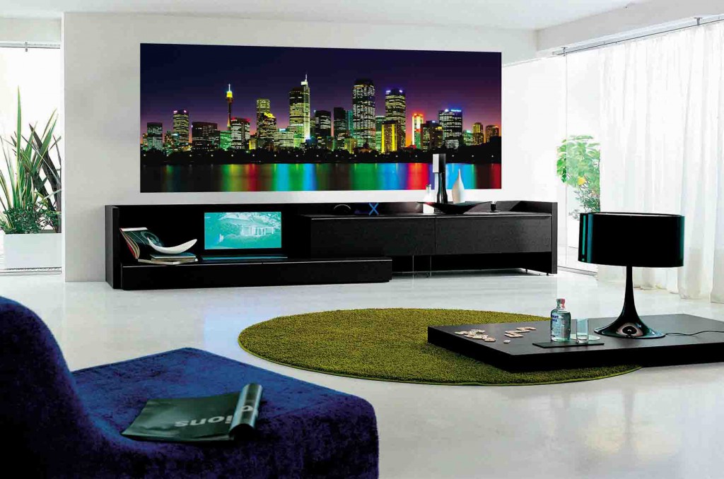 Использование панорамных обоев в гостиной придаст шарм и стиль интерьеру.