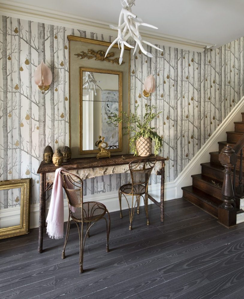 После поклейки обоев их покрывают закаленным стеклом, чтобы было одновременно и оригинально, и практично.