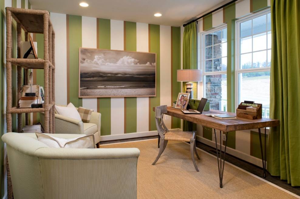 Для того, чтобы определиться перед выбором конкретного варианта, необходимо провести комплексный анализ помещения, планируемого дизайна. Общая гамма насыщенности должна сочетаться с выбранными обоями зеленого цвета. Перегруженность помещения насыщенной гаммой не допускается.