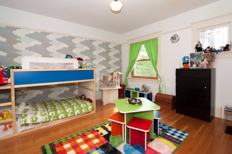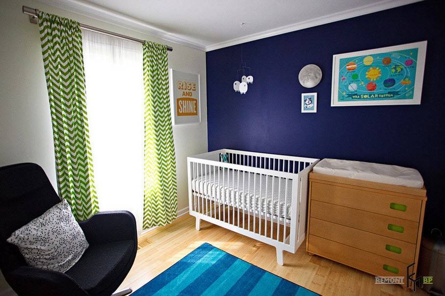Зеленый для детской — один из самых универсальных. Он будет одинаково хорошо смотреться в комнате и мальчика, и девочки.