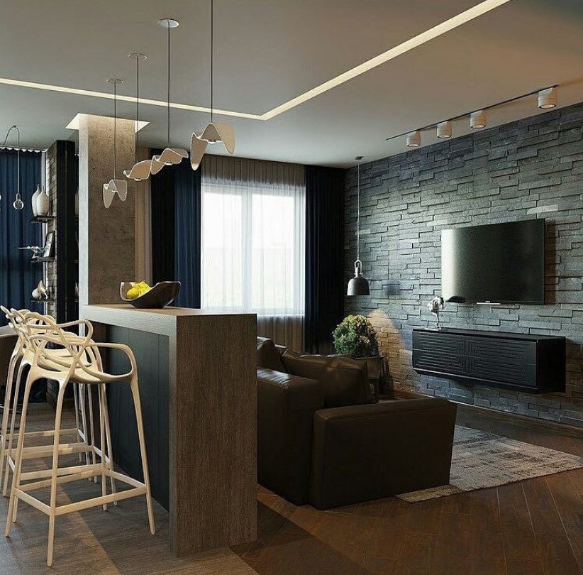 Для выделения участков комбинируем разных цветов, декора или фактур. Такой способ четко определяет границы отдельных зон, позволяя сохранить эффект простора.