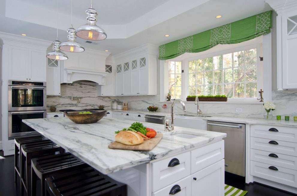 Уместным и очень красивым дополнением кухонного пространства будут шторы зеленого цвета. Как известно, такой оттенок пробуждает аппетит, поэтому именно здесь он будет актуальным.