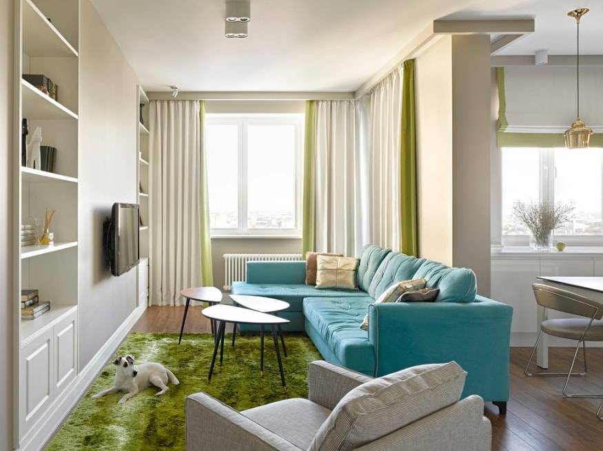 Зеленые шторы в гостиной