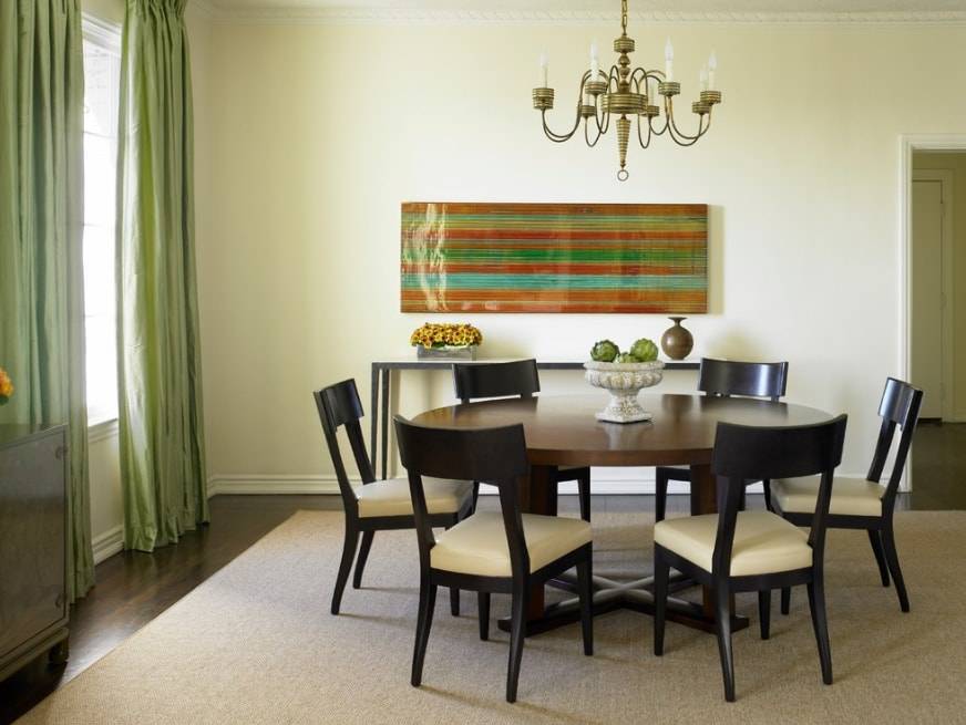В оформительском деле геометрические фигуры, особенно круги, занимают место на пике моды. Сюда относят не только рисунки на обоях, но и на шторах и декоративных украшениях. Только надо делать различия при оформлении помещений разной функциональной направленности.