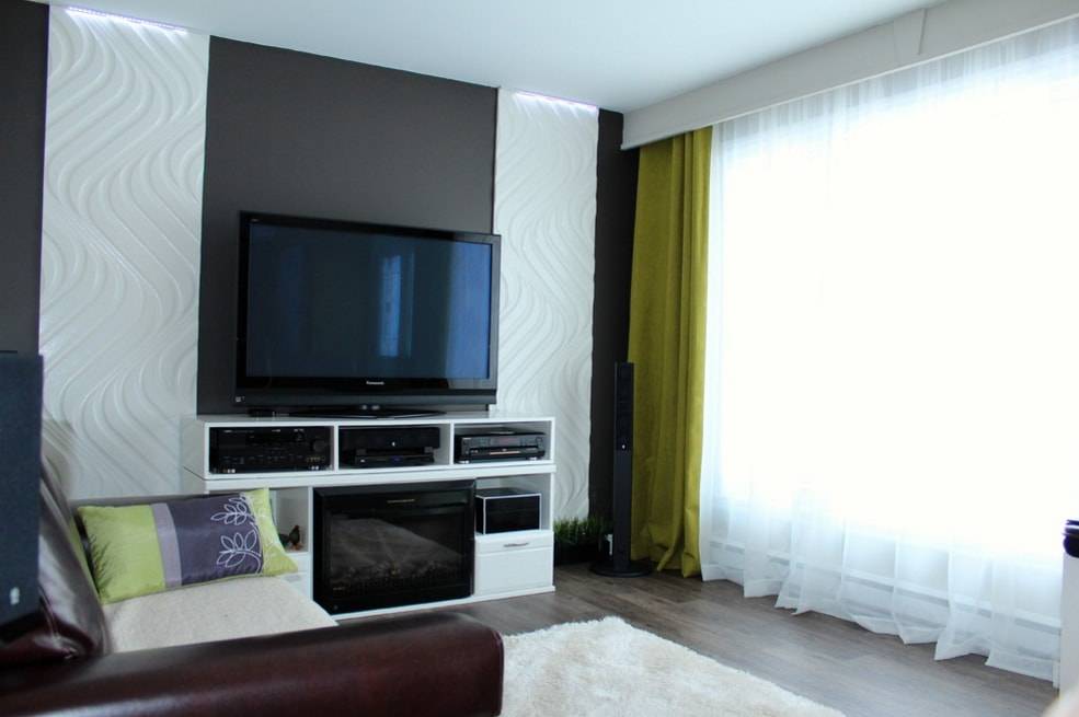 Это могут быть отдельные предметы или фронтальная стена, на которой находится телеэкран, мятные, салатовые или болотные оттенки — вашему покою это никак не помешает.
