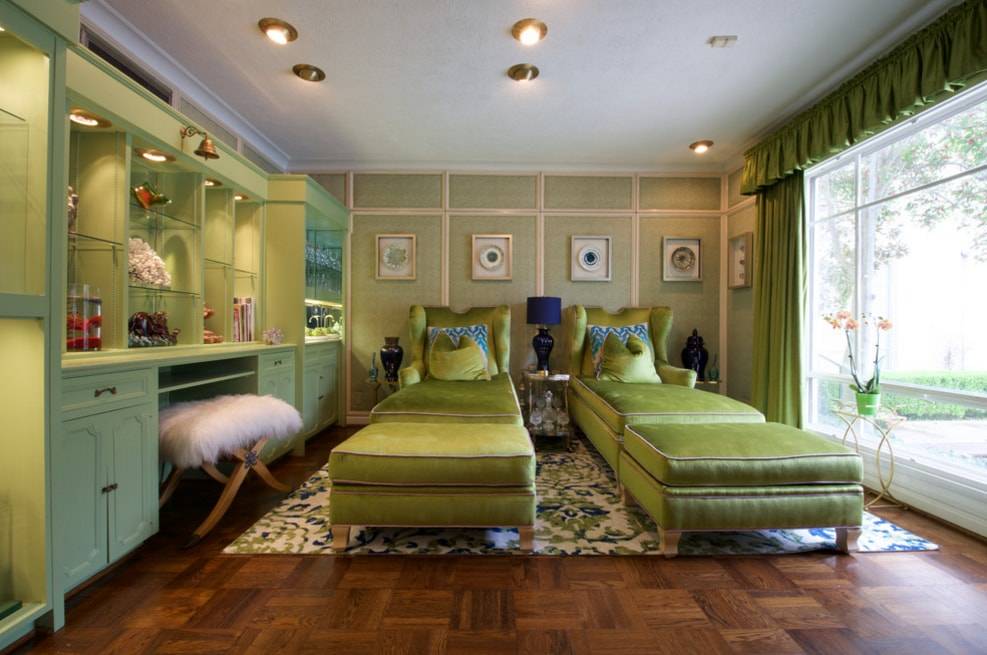 Зеленый цвет в интерьере разных комнатах