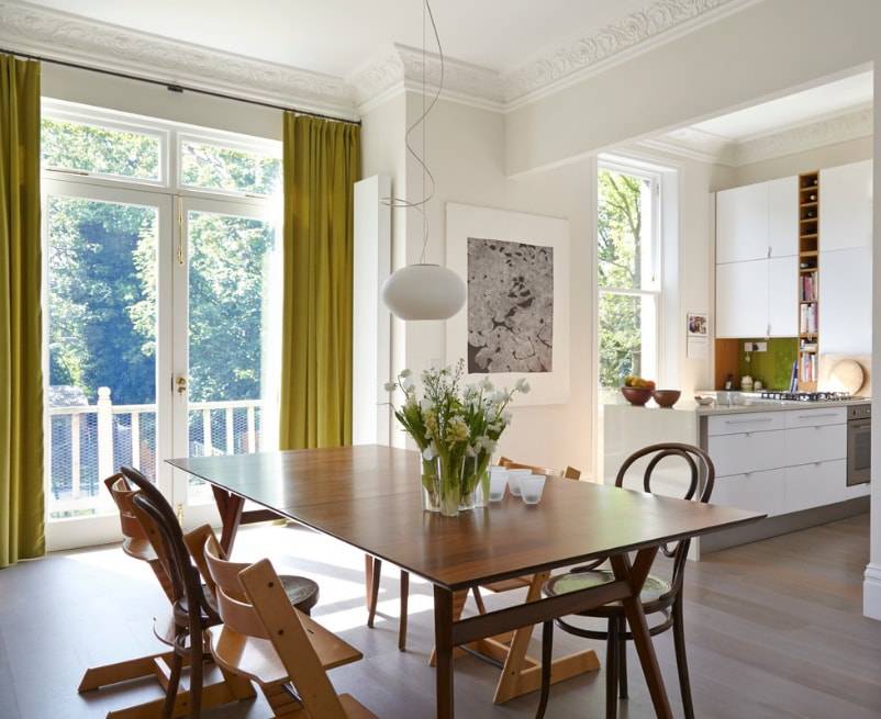 Как уже говорилось выше, шторы зеленого цвета – отличное решение для квартиры в любом стиле. Но все же существует несколько наиболее удачных вариантов сочетания.