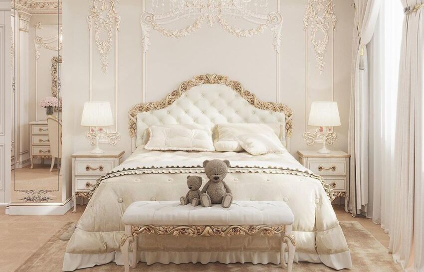 Для создания мягкого ненавязчивого классического интерьера подойдет мебель, выполненная в аналогичной карамельной палитре, разве что на пару оттенков темнее или светлее. Если хотите чего-то более яркого и жизнерадостного, то можете смело присматриваться к мебели цвета фуксия, синей, нежно-голубой или бледно-розовой. Очень красиво будут смотреться две стены оклеенные бежевыми обоями, а две полосатыми или принтованными. Естественно принт должен гармонировать с оттенком мебели, если мебель голубого цвета, то и узор на обоях должен быть голубым.