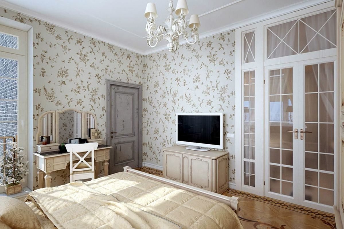 В таких интерьерах хорошо смотрятся обои нежных желтых и зеленых оттенков. Преобладать должна пастельная палитра. Решение о том, какие покрытия использовать – монохромные или с нежными растительными узорами, принимается индивидуально.