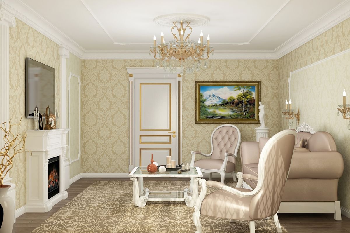 Обои для гостиной в классическом стиле