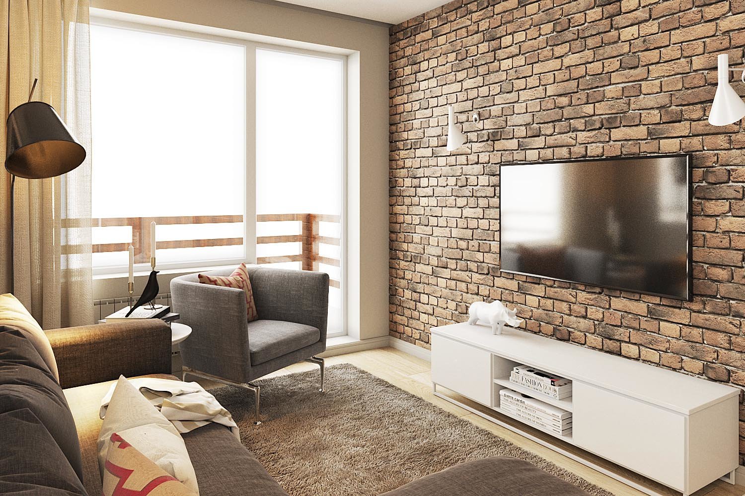 - Скандинавский — этот стиль сочетает в себе высокую эффективность меблировки, подбирающейся для него, и белый выигрышный цвет. Характерными его отличием от предыдущих двух направлений является преобладание натуральных материалов: кирпича, камня, дерева;