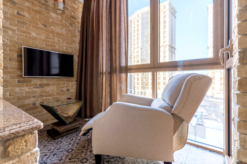 1Если это будет столовая или место для чаепития, обязательно нужно найти место для стола. Ширина некоторых лоджий позволяет устанавливать компактные модели. Если же это невозможно, расширьте подоконник консолью, установите барную стойку или же складной стол, дополнив интерьер высокими стульями.