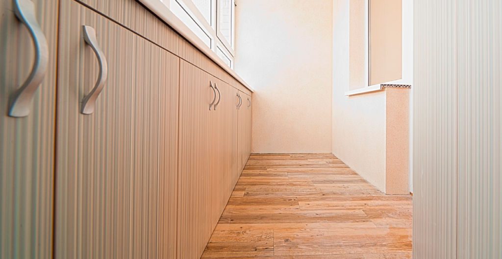 Аналогичным техническими показателями обладает ламинат. Его нередко используют для оформления стен и настила напольного покрытия. Процесс отделки балкона ламинатом не отличается от работы с панелями ПВХ.