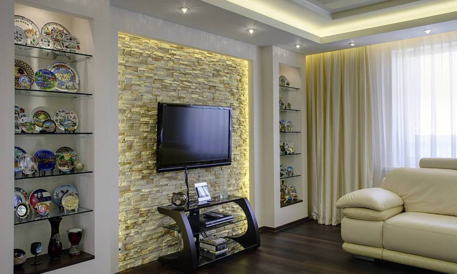 Важно заранее определиться с размещением на стенах тяжелых объектов – телевизора и полок. Для них устанавливаются дополнительные горизонтальные перемычки.