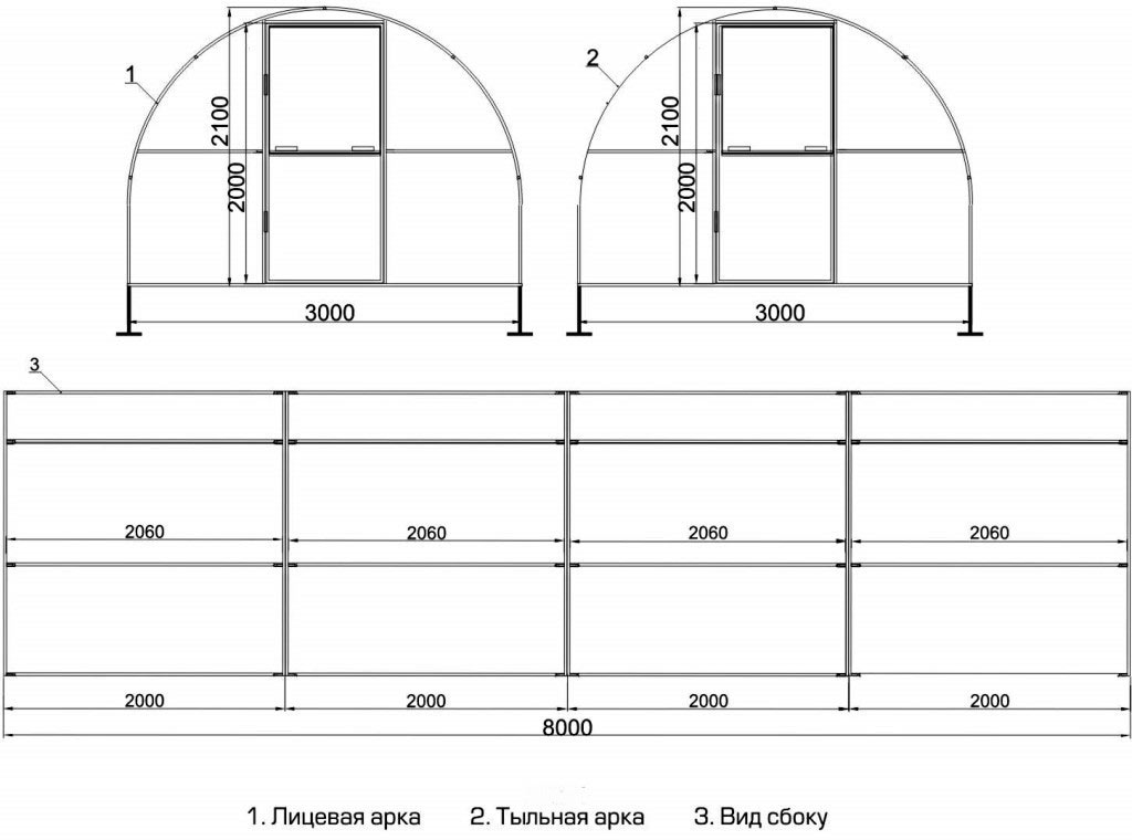 Чертеж арочной поликарбонатной теплицы из профильной трубы