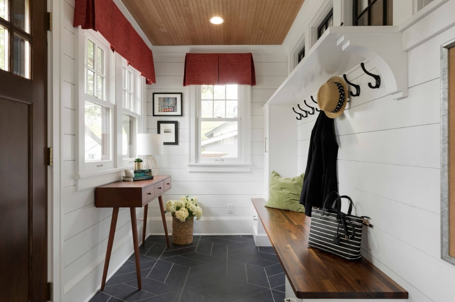 - Место для хранения вещей. Подумайте о том, чтобы иметь крючок, корзину или ящик для каждого члена семьи, чтобы у них всегда было место, куда положить все вещи, как только они войдут в дом. Также все члены семьи будут точно знать, где найти вещи, когда они уходят. Если у вас есть маленькие дети, можно закодировать места для хранения разными цветами.