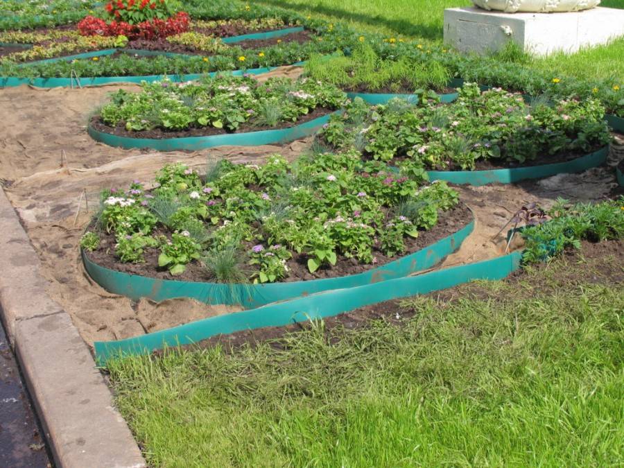 - Рулонная лента для бордюров. Стоит недорого. Просто фиксируется в грунте.