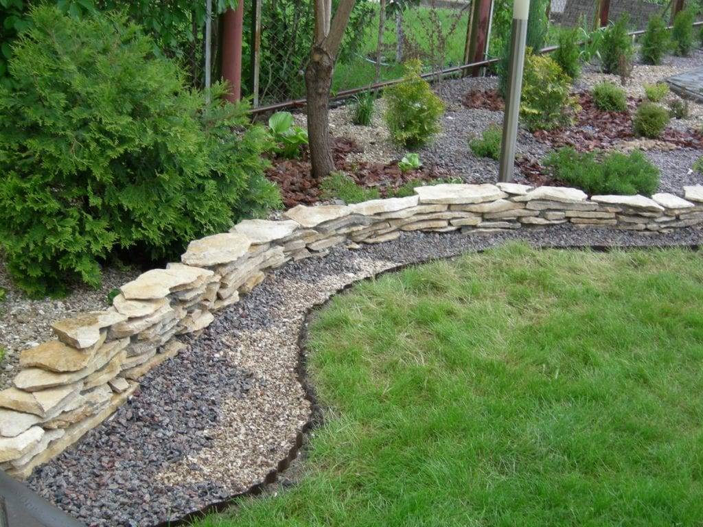 Высота, внешний вид и материал изготовления оградок обусловлен их функцией. Если это декоративный заборчик, он может быть не выше 5–7 см, сделать его можно из чего только пожелает хозяин. Бордюр вокруг грядок или газонов можно сделать высотой 10–15 см. Каменные ограждения для клумб могут решать чисто декоративные задачи, например, легко выложить своими руками красивые камни по периметру клумбы, чтобы просто указать ее границы. Можно сложить плоские камни вокруг клумб или грядок друг на друга, они будут держаться только благодаря силе тяжести.