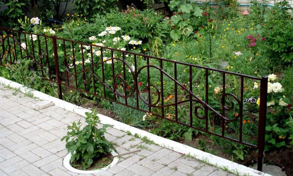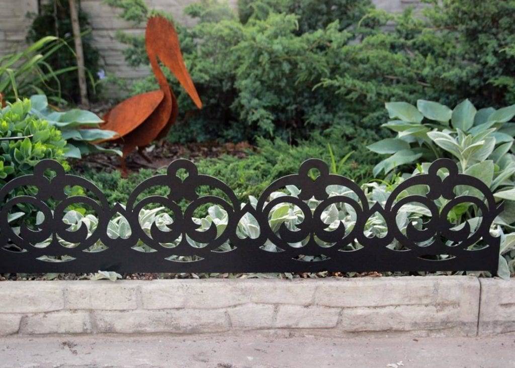 Легкие низкие ажурные кованые заборчики украсят практически любой сад. Для клумб с высокими цветами можно подобрать подходящую высоту такого заборчика, и он обеспечит хороший обзор цветов