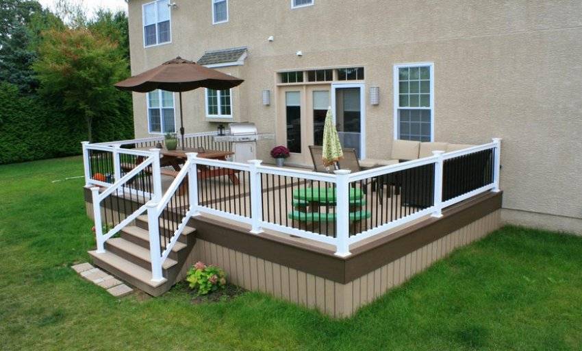 В случаях, когда терраса расположена на некотором возвышении, ограждения служат обязательным элементом безопасности. В такой ситуации целесообразно даже пожертвовать некоторым удобством в угоду более высокой конструкции. Она позволит избежать падения заигравшихся детей или отметивших на открытом воздухе какой-либо праздник взрослых.