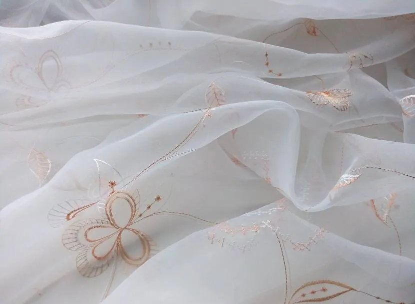 Органзу делают из разных волокон и пряжи. Это натуральные и синтетические нити из естественного или искусственного шелка, вискозы и полиэстера. Шелковые ткани прочны, легко разглаживаются, не сминаются и красиво струятся. Ткани из вискозы и полиэстера переносят многочисленные стирки и износостойки. Материя из чистого полиэстера может выгорать на солнце. Комбинированные (смесовые) ткани – самые оптимальные и подходят по любым параметрам.