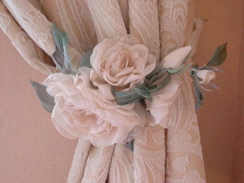 Объемные цветочные подхваты для декорирования штор из органзыИсточник archidea.com.ua