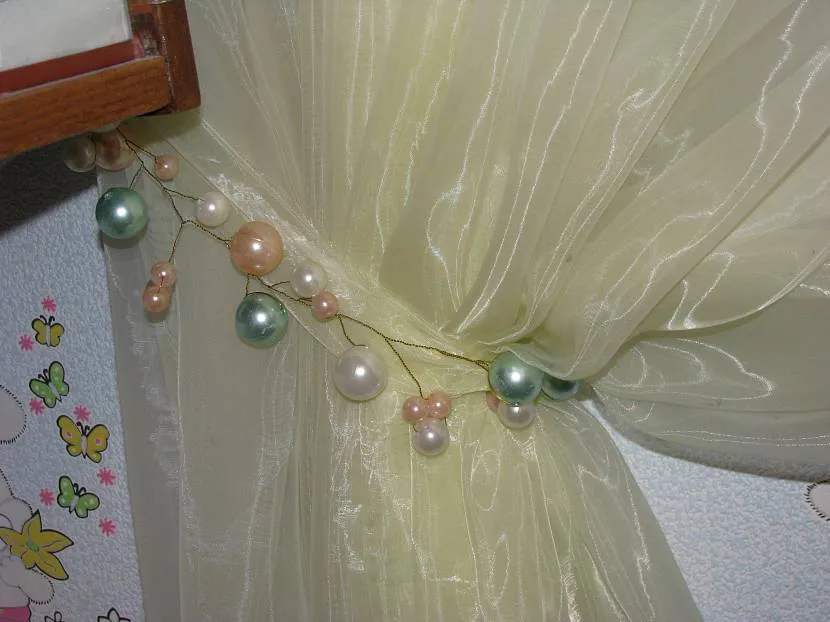 Оформление шторы из органзы нитью с бусинами разных размеров и цветовИсточник nn.ru