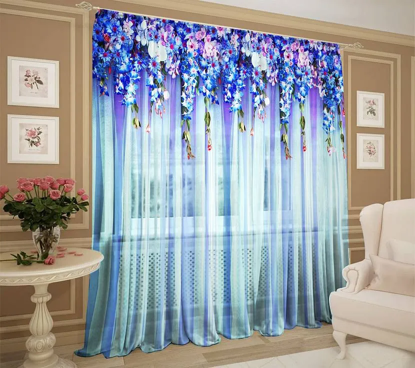 Органза с крупными цветами идеально разбавит классический интерьер Источник cdn1.ozone.ru