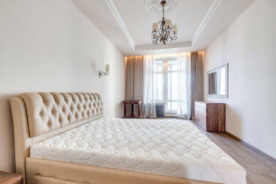 Тюль с трехмерным эффектом — неверное решение для маленькой спальни. Ткань будет все время деформироваться, искажая рисунок. Такой вид штор зрительно уменьшает пространство. Более подходящим станет вариант тюля пастельных цветов и аккуратной вышивкой.