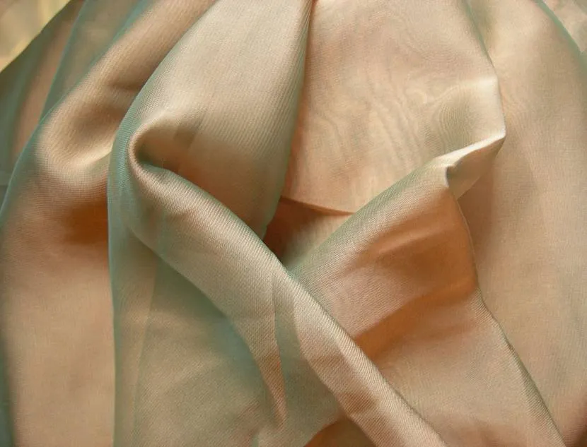 Полупрозрачная органза хамелеон – песочная с зеленым отливомИсточник livemaster.ru