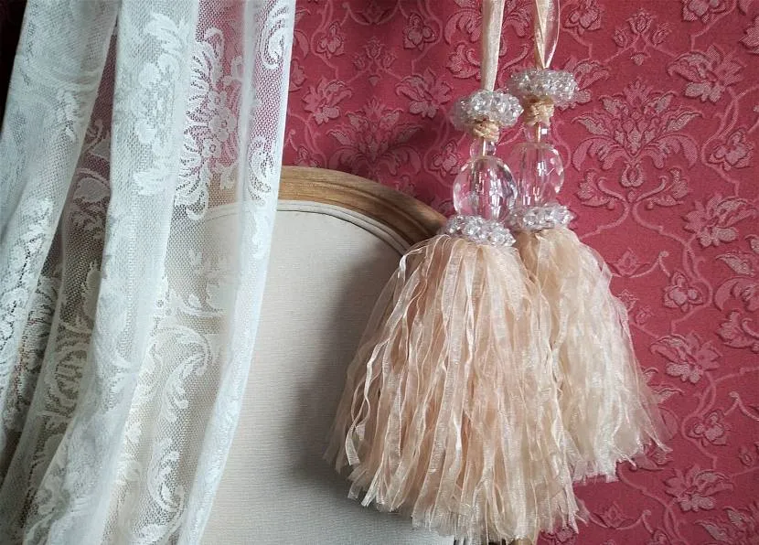 Кисти с бусинами на лентах для декорирования занавесей из органзыИсточник livemaster.ru