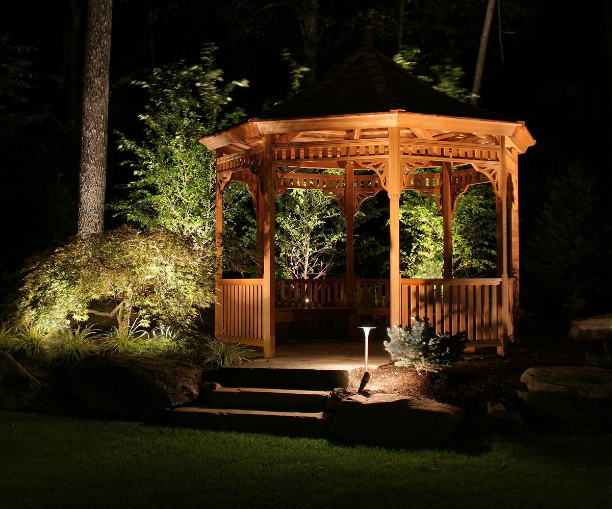 Существует множество вариантов освещения беседок, причём, чаще всего, работы по электрификации данных строений проводятся самостоятельно, с учётом дизайна основных построек и иных элементов оформления участка.