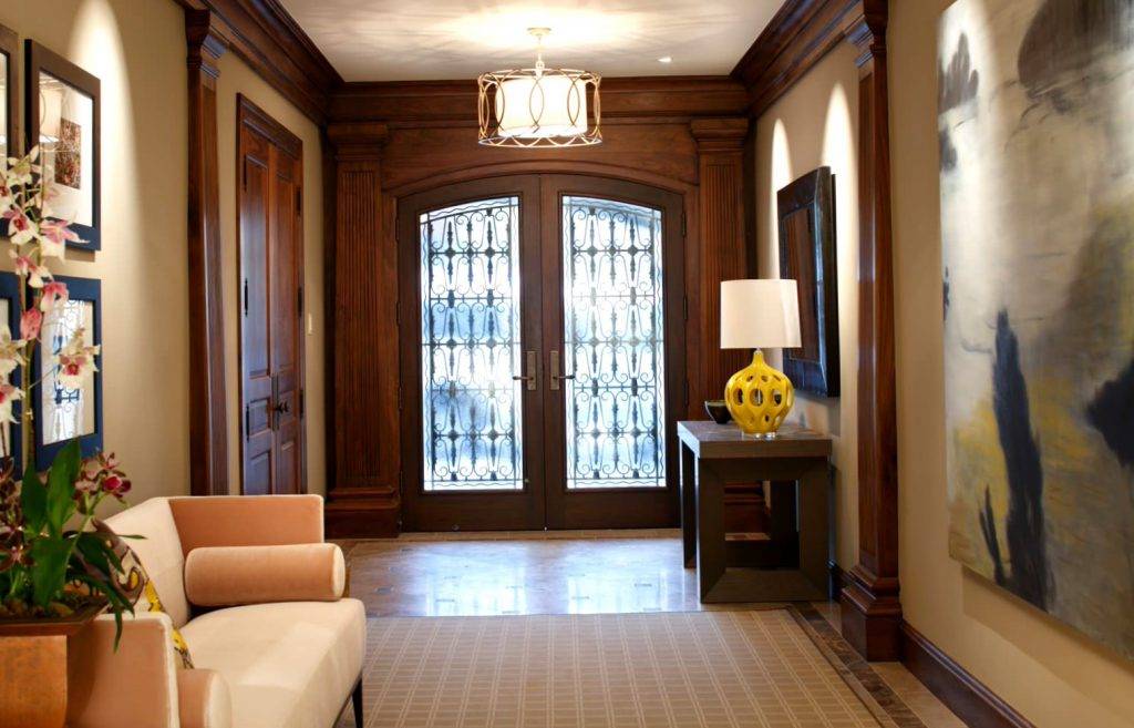 Многие современные дома имеют прихожие, созданные по типу архитектурного «узла». То есть, в подобном месте находится соединение выходов и входов в различные комнаты, коридоры, а также лестница на другие этажи. В прихожих такого рода следует устанавливать большие потолочные люстры, потому что лишь они смогут эффективно осветить все помещение.