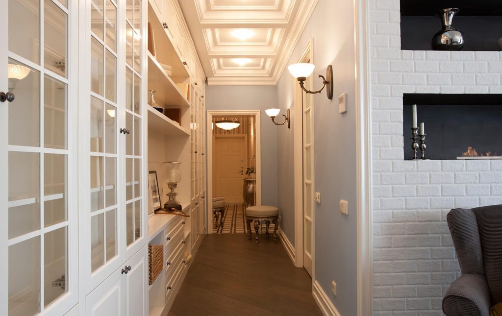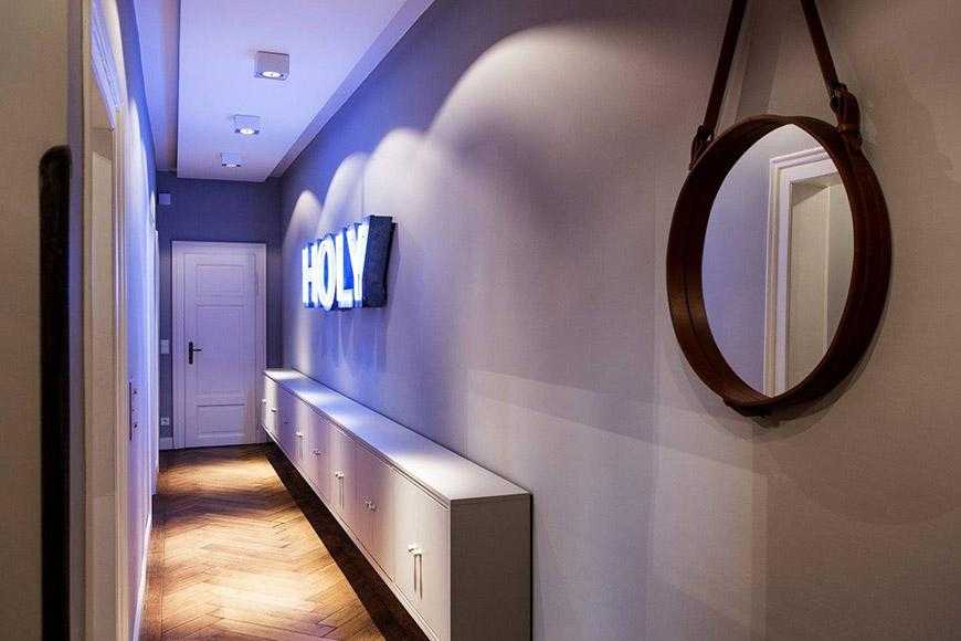 Когда речь идет о проектировании длинной прихожей, первое, что следует учитывать, – это ее размер. Как правило, в большинстве домов их строят длинными и неширокими. С помощью соответствующего освещения мастера постараются скрыть недостатки крошечного коридора.