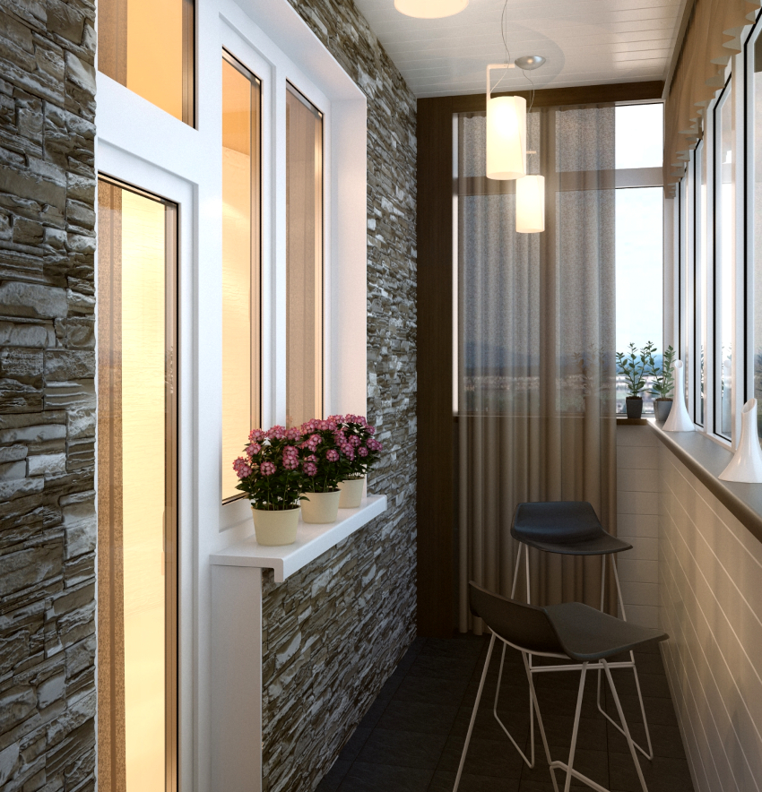 Камень в качестве отделки на балконе
