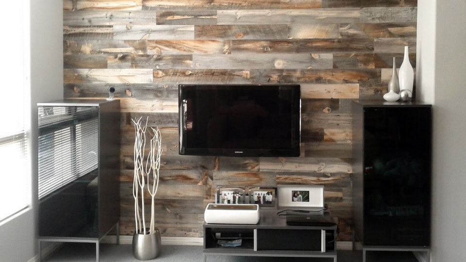 Для декоративной отделки стен в интерьерах с сельским колоритом часто используется обрезная доска с естественной шершавой фактурой. Так называют цельное полотно бревна, обработанное по краю. Это материал с большим декоративным потенциалом, предполагающий разные способы укладки и финальной отделки. Доски можно укладывать по диагонали, «ёлочкой», вразнобой, морить, красить и сочетать разные цвета. В интерьерах, тяготеющих к стилю прованс, рустик или кантри, приветствуются браширование, нарочитые состаренности и потертости.